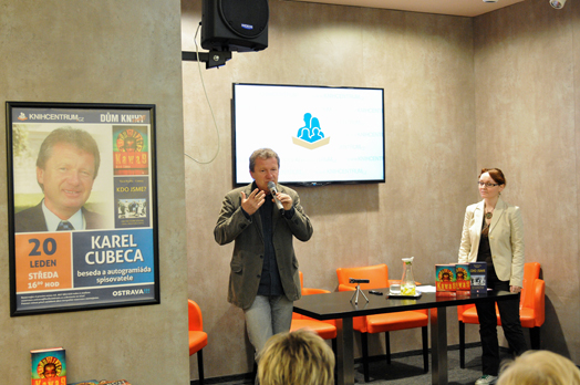 Beseda a autogramiáda s Karlem Cubecou v ostravském Knihcentru 2016.